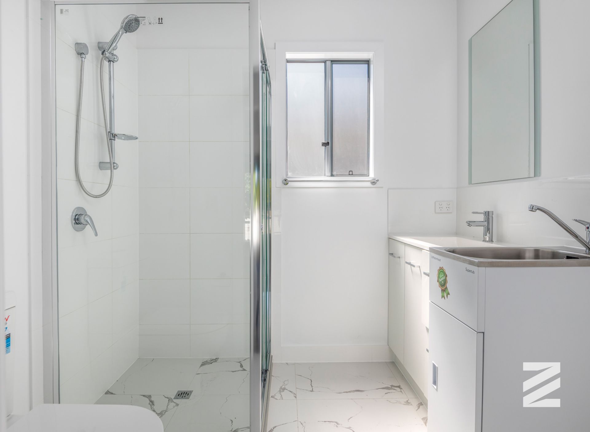 – Laundry cleverly integrated into the bathroom for added convenience