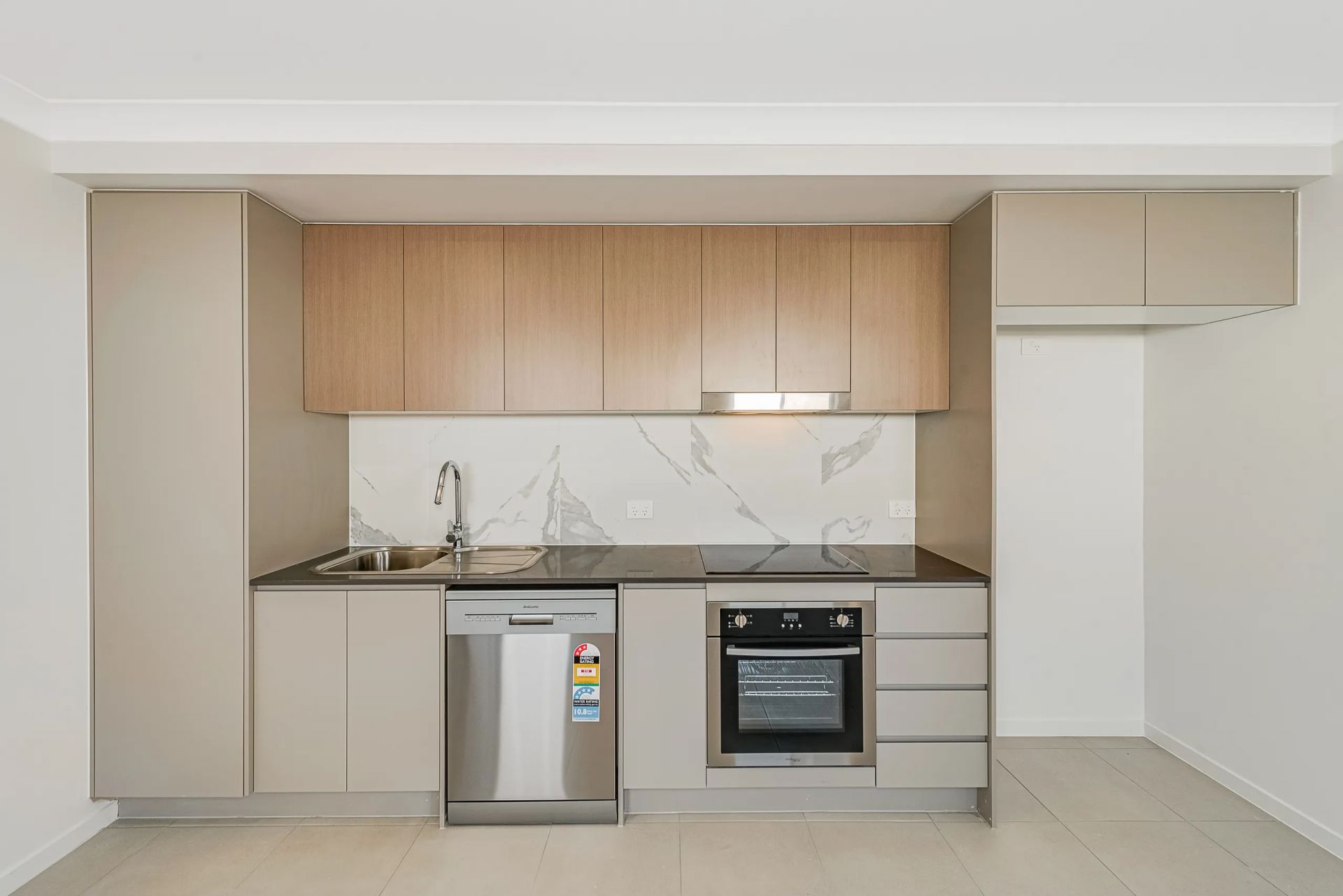 – Stylish kitchen with stone benchtops and stainless-steel appliances