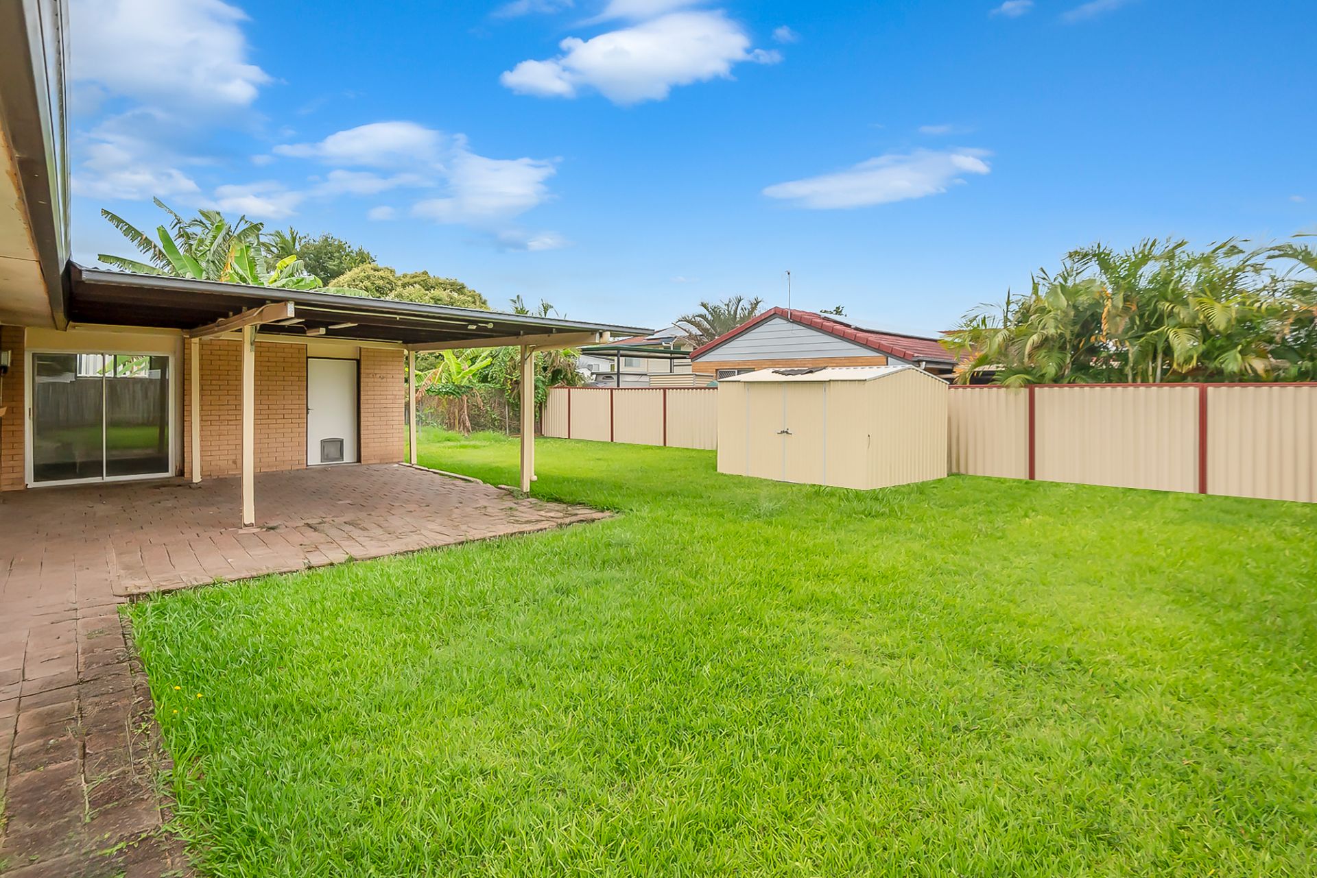 Covered rear entertaining area overlooking the backyard